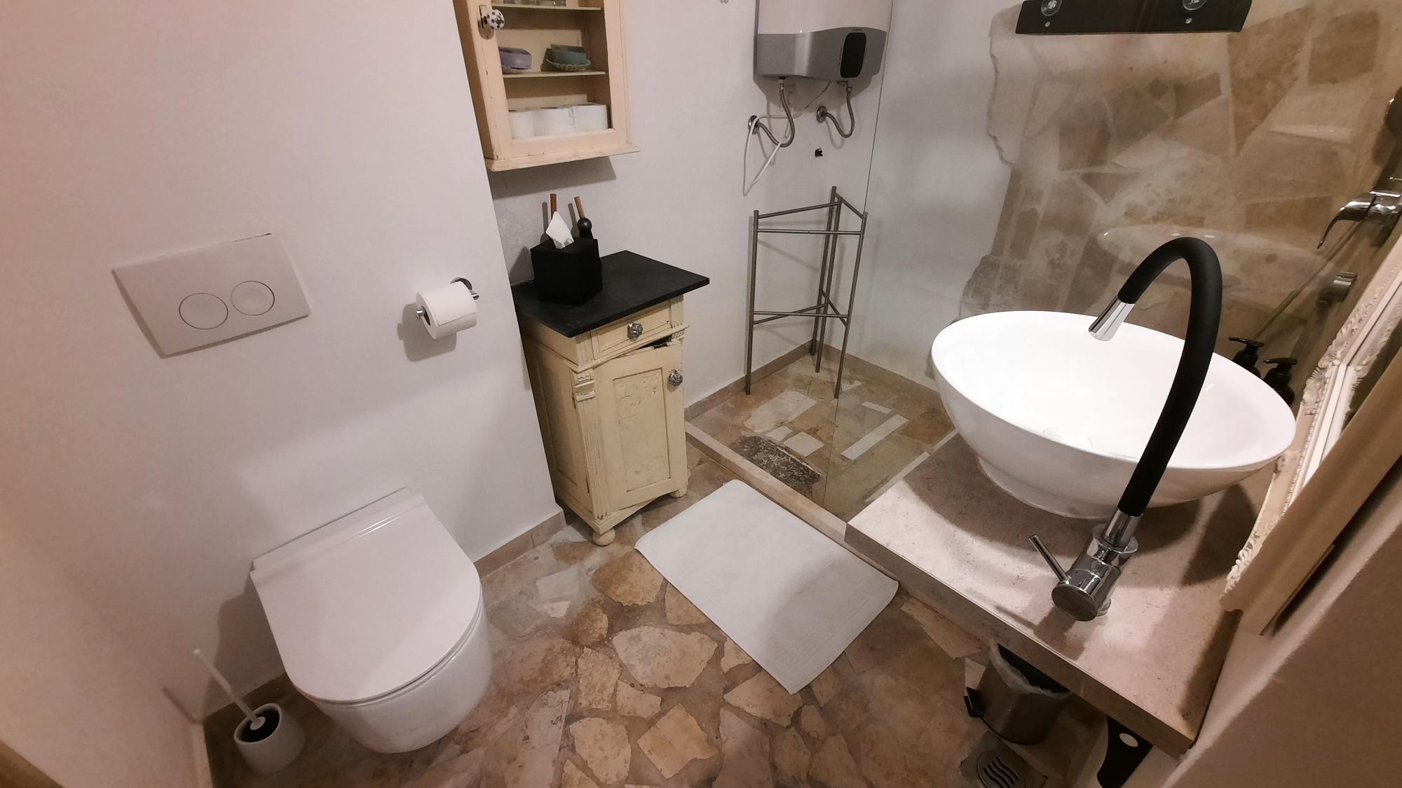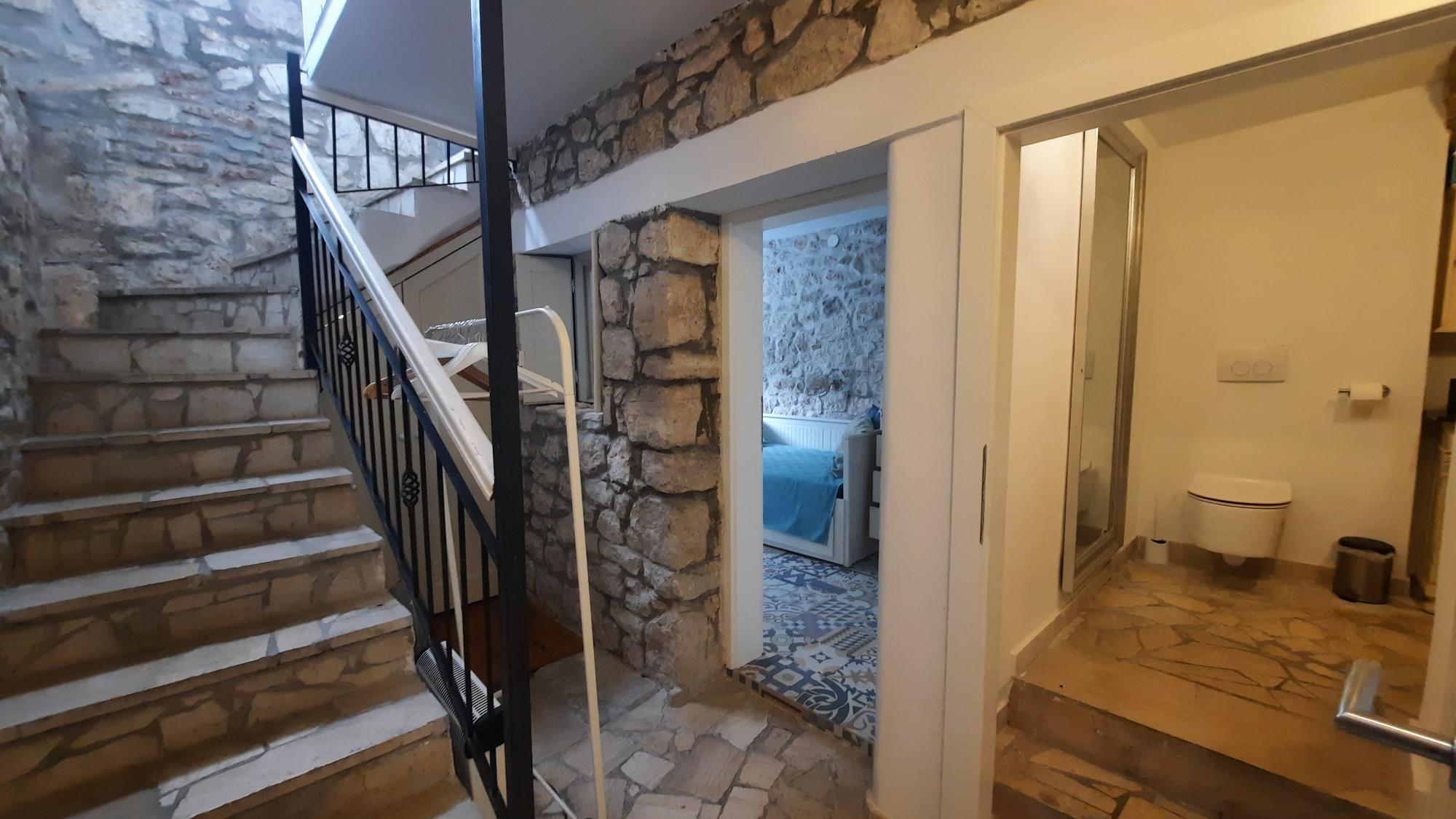 In einem weiteren Stockwerk – erreichbar über eine großzügige Stiege, befindet sich ein Studioraum mit kleiner Küche und Dusch/WC – vom Studio aus kannst du auf der Terrasse den Sonnenuntergang genießen mit Blick über die Dächer der Altstadt bis hin zur Euphemiakirche.