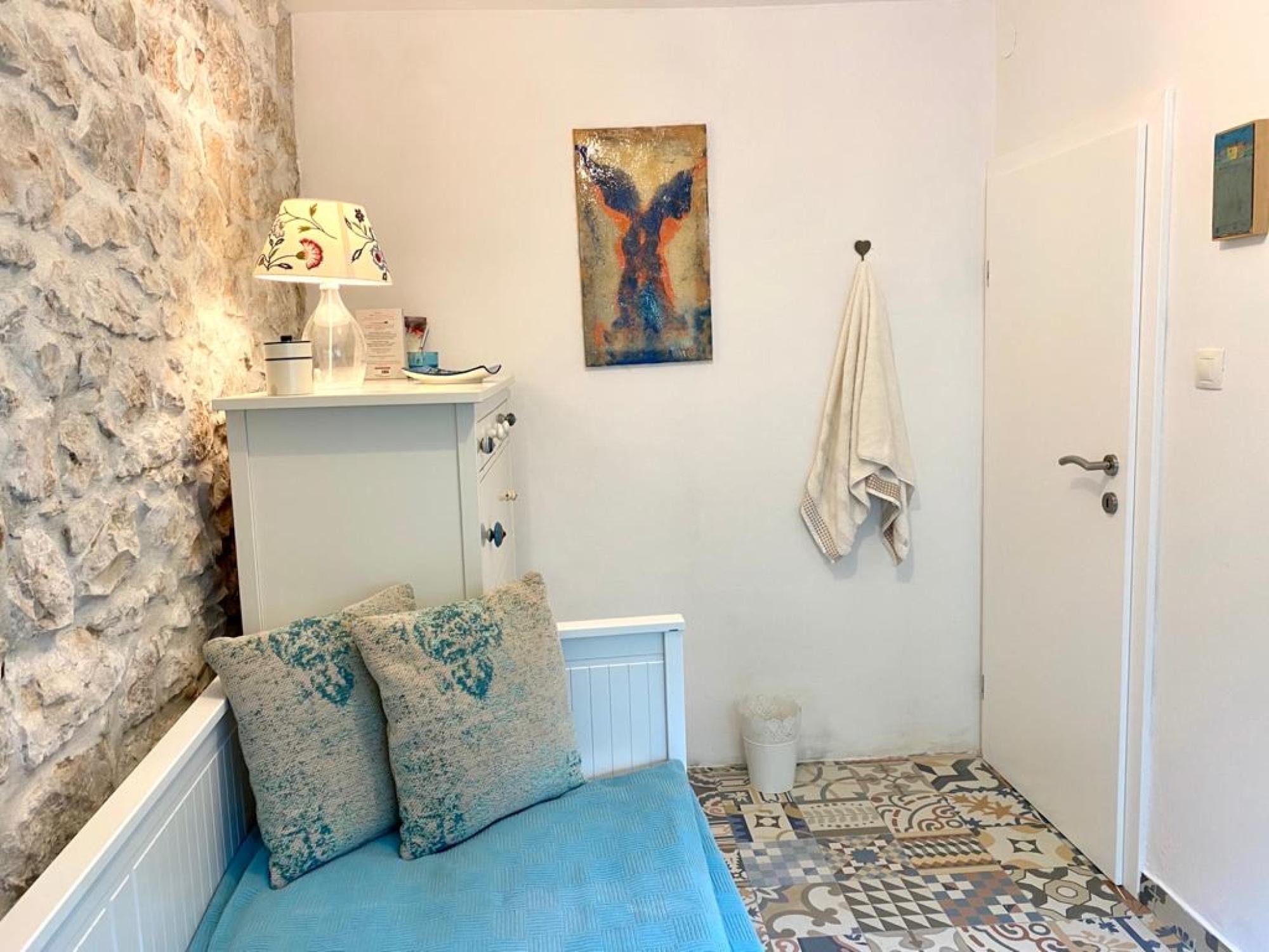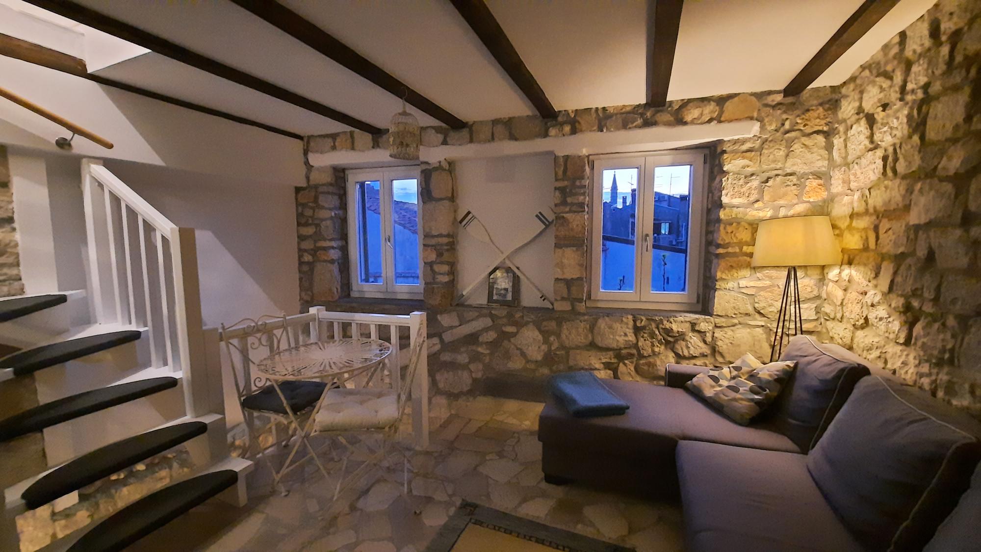 Das Haus liegt in der Altstadt, in einer Seitengasse von der Einkaufsstraße Carrera, beim Platz Campitelli/Circolo. Mitten im Zentrum und doch merkt und hört man nichts vom pulsierenden Leben. Nur wenige Meter zur Carrera hinunter, findet man sich im Treiben der Stadt Rovinj: die Boote, die Meeresbrise, das Essen - wir empfehlen: sich einfach treiben lassen und genießen.