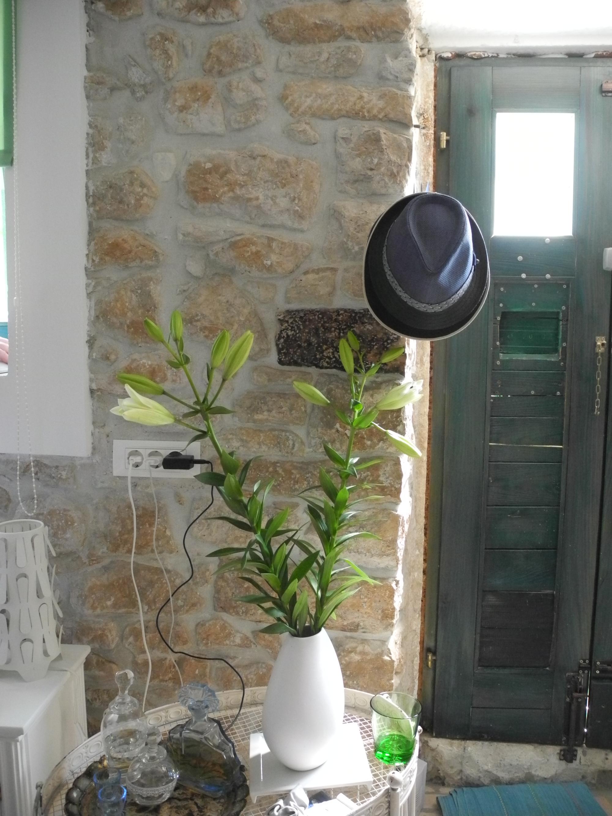 Im Erdgeschoß befindet sich eine Küche mit kleiner Sitzgelegenheit, sehr gut ausgestattet für Hobbyköche, außerdem gibt es ein großräumiges Bad mit Walk ìn Dusche und ein kleines gemütliches Gästezimmer mit Ausblick in den Palmengarten, geeignet für zwei Personen.